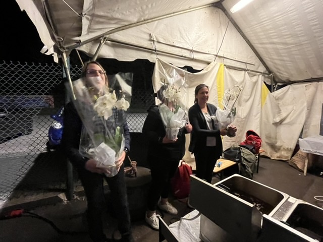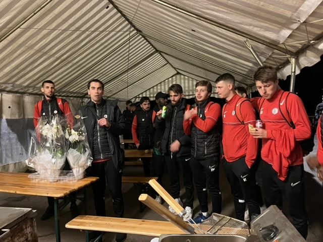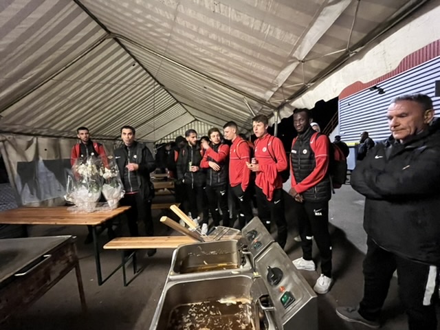 Un beau geste des joueurs et staff de l’équipe A qui ont offert à l’issue du match des fleurs et petit équipement aux 5 bénévoles de la restauration du soir. Sans eux : ni frites ni sandwichs !! La sixième bénévole recevra quant à elle le bisou de l’entraîneur heureux de cette victoire si importante.