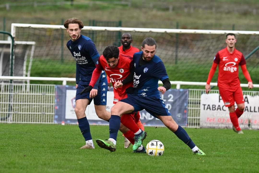 Déçus par cette égalisation les brasseurs reviennent avec la même envie et la volonté de faire le même pressing qu’en première période mais il va falloir attendre la 54ème minute pour voir la première tentative des brasseurs avec une bonne frappe de 25 mètres à mi-hauteur d’Aznar que Hoss va repousser. Dans la minute qui suit, les racingmen vont avoir une énorme occasion avec Djecta qui déborde à gauche et qui rentre dans la surface pour offrir un bon ballon en retrait à Barthe qui au point de pénalty reprend mais le ballon est sauvé du dos sur sa ligne par un défenseur local. On se dit que la chance n’est toujours pas dans le camp de Champigneulles qui n’arrivent pas à marqué ce second but malgré le nombre d’occasion qu’il se crée. On se dit même qu’à la 60ème minute sur leur seule occasion de la seconde période, les locaux vont prendre l’avantage mais le coup franc à 25 mètres à droite de Steimetz le meneur de jeu local va raser la lucarne droite du but visiteur. Le match perd en intensité avec un terrain devenu très lourd et des brasseurs qui ont déjà beaucoup courus jusque là. Ils vont garder leur valeur de solidarité jusqu’au bout avec un état d’esprit retrouvé et ne laissent que très peu de ballon à leurs adversaires. Ils vont enfin être récompensés à la 71ème minute quand Barthe sur la droite va faire un super travail en mystifiant son vis-à-vis avant d’adresser un superbe centre au premier poteau que Logallo reprend de la tête pour envoyer le ballon dans la lucarne droite du but mosellan. Les coéquipiers de Fregona sont libérés et reprennent l’avantage au score et entrevoit une qualification pour le 5ème tour de la coupe du Grand Est et surtout retrouve le gout de la victoire après 6 défaites consécutives d’octobre à mi novembre. Il reste encore un bon quart d’heure à tenir mais ils ne vont pas être inquiéter par de mosellans totalement stériles offensivement. La dernière occasion sera même encore pour le racing à la 74ème minute avec un nouveau débordement de Barthe sur la droite qui a fait un gros match pour sa première titularisation depuis son retour de sa grave blessure au genou. Il adresse un bon centre et c’est à nouveau Logallo qui se trouve à la réception au point de pénalty et qui reprend mais sa frappe qui prenait la direction des filets est contrée par un pied mosellan. Voila Champigneulles a renoué avec la victoire et avec la manière même si le leader de R2 n’est pas du même niveau que les cadors de N3. Cette victoire fait du bien et tous les joueurs ont dédié ce match à leur coéquipier Ismail Arbouze blessé gravement au genou la semaine dernière en championnat au malnoy et qu’on ne reverra pas sur un terrain cette saison. Courage à lui et patience après son opération. Une victoire qui fait du bien avant de se rendre à Jarville pour un match qu’il faudra impérativement remporter pour garder l’espoir de sortir de la zone rouge avant la réception d’Epernay un autre candidat au maintien.