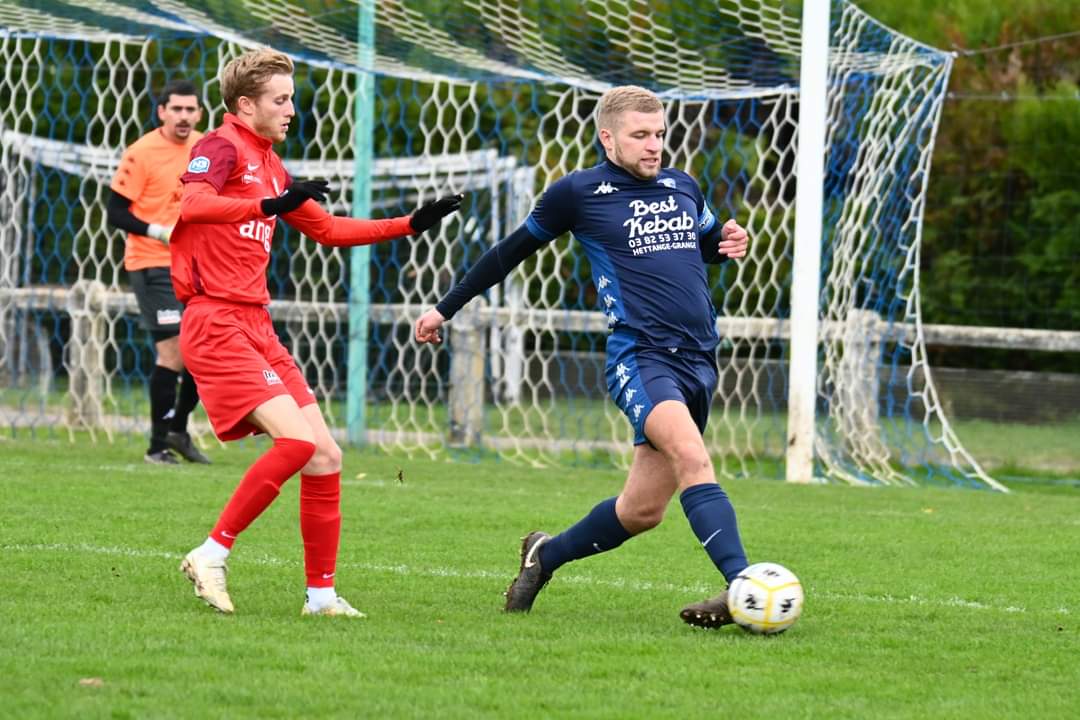 Après leur 5 dernières défaites consécutives en championnat, les brasseurs devaient se déplaçaient pour le 4ème tour de la Coupe du Grand Est à Hettange Grande actuel leader de son groupe en R2. Sur le papier et au vue des dernières performances du racing on pouvait s’attendre à un match piège avec des mosellans sur une pente ascendante et des brasseurs plutôt dans le trou après leur bon début de championnat. Le coach julien Chaudre devait en plus pour ce match se priver des services de Mervelet, Arbouze et Guerin blessés, de Montgénie, et de Berisha retenu par ses obligations professionnelles. Ce match pouvait permettre aux brasseurs avant leur primordial déplacement à Jarville de se remettre en confiance où alors de plonger définitivement vers les abysses… d’autant plus que le terrain mosellan très gras n’augurait pas de grande possibilité de développer du jeu jouer comme aime bien le faire le racing. Bref, en résumé, les conditions étaient plutôt défavorables aux brasseurs mais le coach a su remobiliser ses troupes pour ce match hyper important pour retrouver un peu de confiance avant les importantes échéances à venir. Après la triste nouvelle de la grave blessure d’Arbouze la semaine dernière, qui va l’éloigner des terrains durant une très longue période, on va voir des brasseurs malgré les conditions, montrés qu’ils possèdent encore cette solidarité et cet état d’esprit qui en avaient fait leur force la saison dernière. Devant une équipe mosellane qui avait toujours l’intention de repartir proprement de derrière, le coach des brasseurs avait intelligemment mis en place un pressing haut de tous les instants que le revenant Barthe et Djecta titularisés en attaque ont particulièrement mis en place pour aller gêner la relance adverse et qui a permis au racing de récupérer bon nombres de ballons dans le camp mosellan. Les hettangeois sont dès le début du match pris à la gorge et n’arrivent pas à mettre en place leur relance de derrière et le ballon ne dépasse que très peu le centre du terrain avant que les brasseurs ne s’en saisissent. Dès le début de match le racing montre de bonnes intentions et à la 6ème minute sur un long ballon du capitaine Fregona c’est Djecta qui se retrouve à 18 mètres dos au but, qui contrôle de la poitrine et qui pivote pour adresser une bonne frappe qui va être contrée et qui raser le poteau droit pour terminer en corner. Le pressing des coéquipiers de Fregona va vite être récompensé à la 7ème minute suite à un corner tiré de la droite, c’est Kabanda qui va récupérer le ballon sur la gauche et qui va centrer pour Barthe au point de pénalty dos au but qui va contrôler et pivoter avant d’adresser une bonne frappe à mis hauteur du pied gauche qui va tromper Hoss et va ouvrir le score pour les brasseurs qui n’avaient pas marqué depuis les arrêts de jeu du match de coupe de France à Rosselange Vitry. Le pressing demandé par le coach a été payant et toute l’équipe continue à jouer haut pour empêcher les mosellans de déployer leur jeu. On retrouve Champigneulles en bonne situation une nouvelle fois à la 11ème minute quand Djecta réussi à contrer le dégagement du gardien local avant de se retourner pour envelopper son ballon du pied gauche mais le portier local bien replacé s’envole sur sa droite pour repousser le ballon. les mosellans n’arrivent pas à sortir et malgré un terrain bien lourd les racingmen respectent à la lettre les consignes du staff et vont encore se créer de nombreuses occasions comme à la 14ème quand Aznar de 20 mètres déclenche une bonne frappe du pied droit mai son tir est légèrement trop croisé et rase le poteau gauche hettangeois. Les brasseurs dominent largement les débats mais n’arrivent pas à marquer ce second but qui leur donnerait un peu d’air au tableau d’affichage. Les brasseurs poursuivent leur pressing et font énormément d’effort sur un terrain qui devient de plus en plus lourd. A la 20ème minute, les visiteurs sont tout près de doubler la mise suite à un bon décalage de Kabanda qui trouve sur la gauche Barthe qui déborde, élimine son vis-à-vis et frappe en angle fermé. Le portier mosellan repousse mais sur Aznar qui arrive lancé au point de pénalty reprend à ras de terre mais Hoss se couche sur sa ligne pour stopper l’essai du milieu du racing. Ça chauffe et ce deuxième but des brasseurs tarde à venir…Les coéquipiers de Molter insistent et on retrouve le latéral droit en action à la 24ème minute. Il déborde sur la droite et adresse un bon centre que Logallo bien lancé reprend de la tête sur la ligne des 16 mètres mais son boulet de canon catapulté passe juste à droite de la lucarne droite mosellane. Les brasseurs continuent leur grosse domination et à la 25ème minute c’est de nouveau Djecta qui se met en évidence et qui reçoit un bon ballon à 12 mètres sur la gauche mais sa frappe est trop croisée et sort juste à droite du but. Les occasions se multiplient mais le score n’est toujours que de 1-0 pour le racing qui n’est toujours pas à l’abri d’un retour hettangeois. A la 27ème minute c’est un nouveau coup franc excentré sur la droite tiré rentrant du pied gauche par Djecta qui atterri sur la tête de Kerdoud mais une nouvelle fois le ballon n’est pas cadré et termine à droite du but. A force de ne pas marquer les brasseurs comme en championnat font se faire punir sur la première incursion des mosellans dans les 30 mètres du racing. On joue la 29ème minute quand sur un corner tiré de la droite le ballon est manqué par Gonzales au premier poteau qui loupe sa reprise et termine sur au second sur Stranieri seul face à Jacquot qui n’a plus qu’à le fusiller du gauche pour égaliser pour les locaux. Champigneulles pas dans une bonne passe depuis quelques matchs paye encore ses errances défensives et malgré leur excellent dé