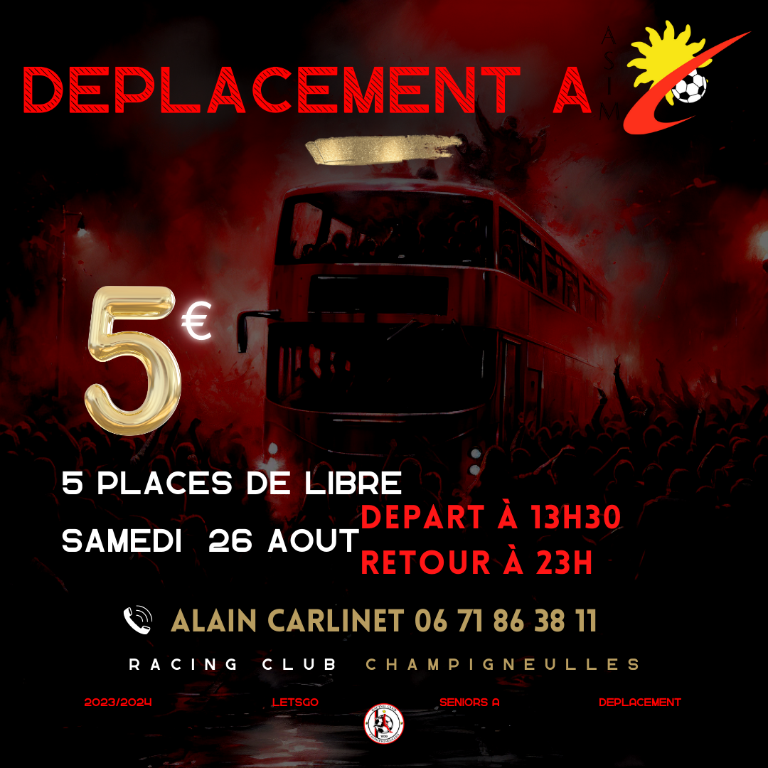 5 places disponibles en bus avec un départ du stade à 13h30