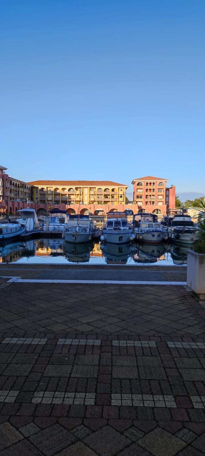 Arrivée pour 07h à Lattes à côté de palavas les flots pour un somptueux petit déjeuner en terrasse prêt du port .