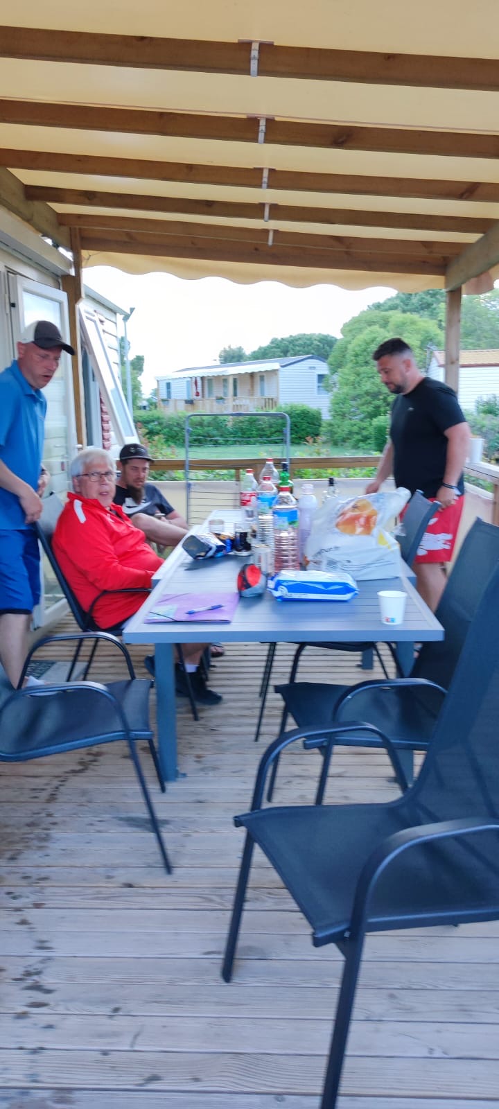 Petit apéro entre nous dans le bungalow des coachs.