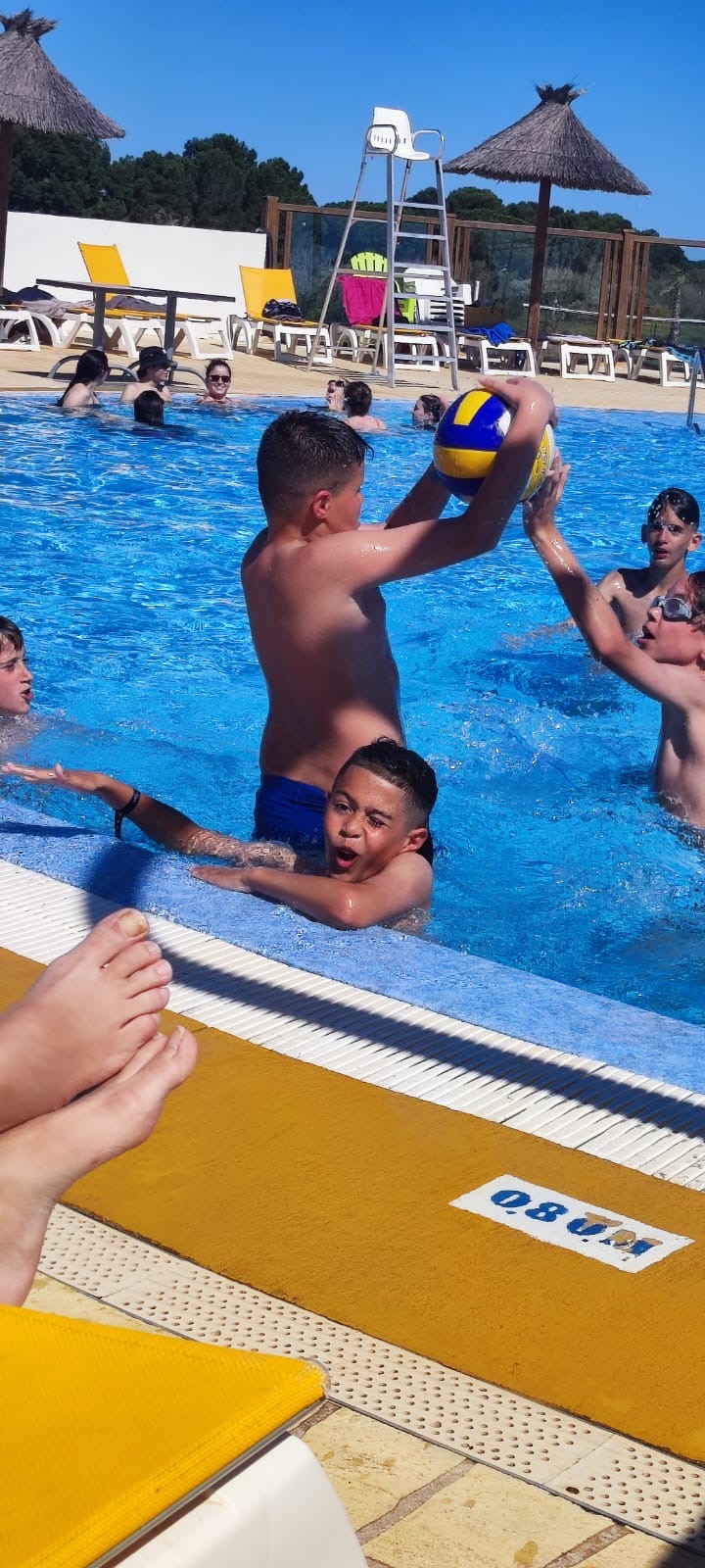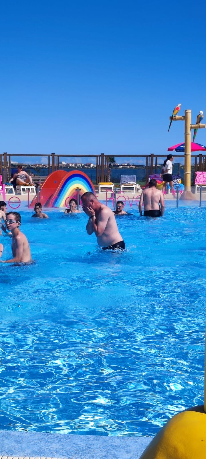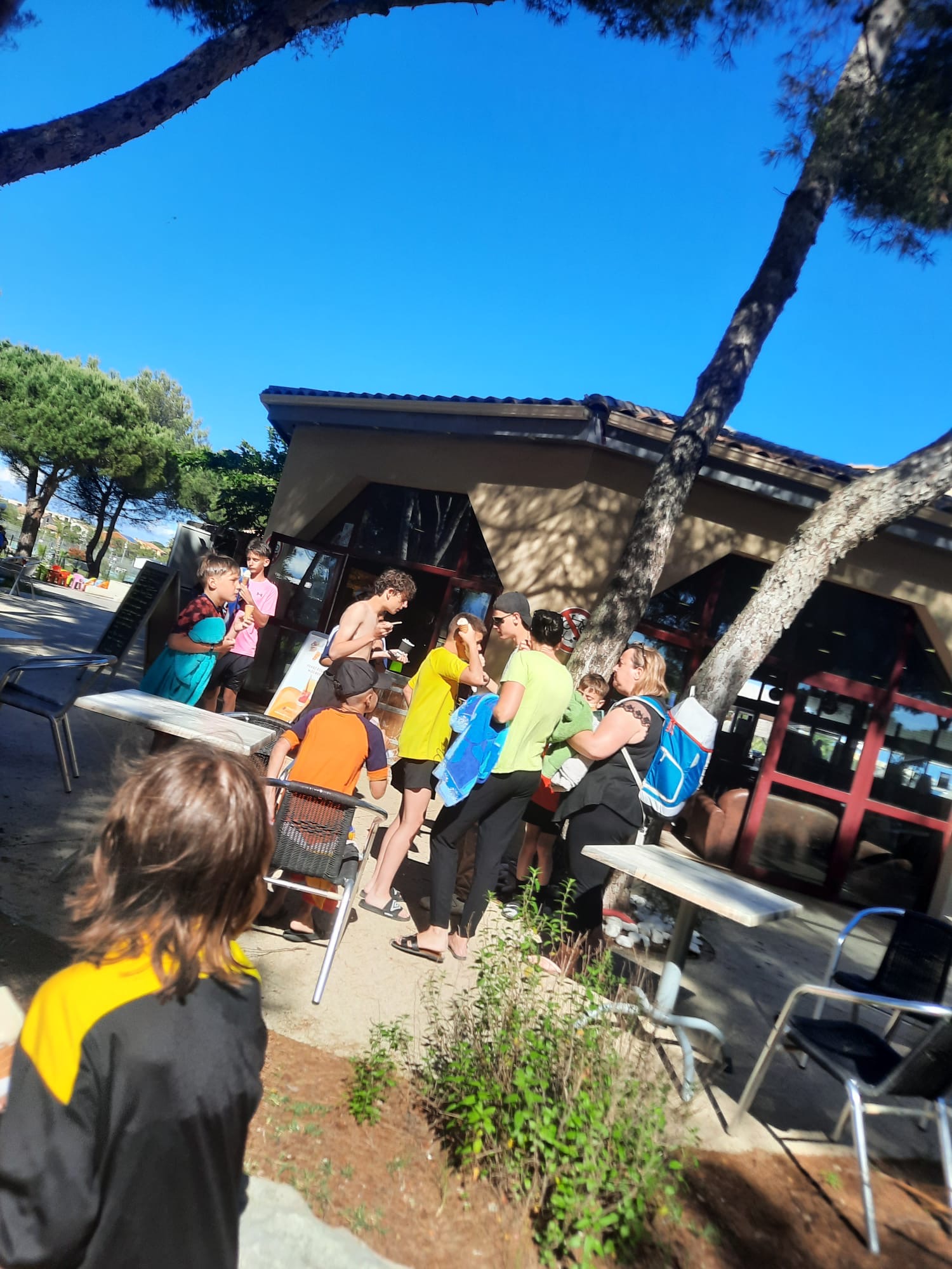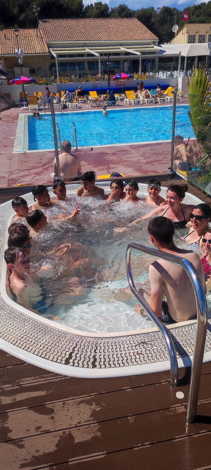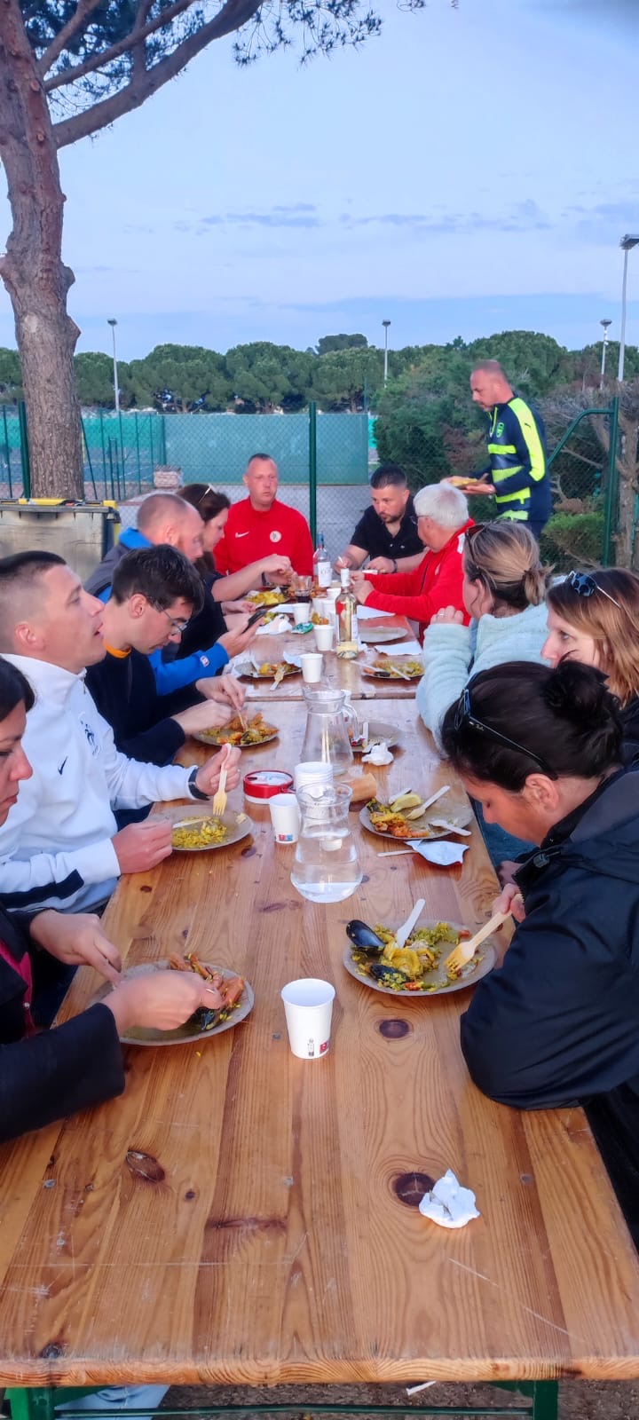 Piscine... toboggan.. glaces italiennes et apéro boucleront notre fin de journée avant d'aller manger Paella au stade avec les autres équipes...