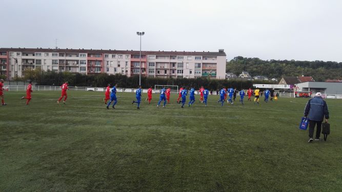 Pour ce 4ème tour de la coupe de France, les brasseurs n’avaient pas hérité d’un tirage facile en devant se rendre chez les Portugais de Thionville titulaire de la R3 et plutôt bien classé en 3ème position de leur groupe. Les brasseurs, plutôt mal en point en championnat jusqu’ici se devaient de retrouver de la confiance avant d’affronter successivement le Fc Lunéville et l’ASNL 2 lors de leur deux prochaines journées de championnat. Jouant exceptionnellement en couleur bleu pour ce match, les hommes de Julien Chaudre vont devoir faire preuve d’un gros mental pour venir à bout des locaux bien décidé à faire sortir Champigneulles de cette coupe de France. Le match commence avec des brasseurs vite en action et dès la première minute c’est Da Cunha titularisé sur le coté droit qui va adresser un bon centre que va coupeau Pechereau au premier poteau mais sa reprise de volée passe à droite du but. Le début de match est plutôt équilibré et sur le synthétique rendu fusant par la plus les deux équipes se neutralisent le plus souvent au milieu du terrain. Ce sont les locaux qui vont avoir une énorme occasion à la 8ème minute sur un long centre de la droite, Montgenie est lobé et c’est Quercia qui va se retrouver seul décalé à 12 mètres sur la gauche et qui va adresser une bonne frappe du gauche à ras de terre mais c’est Jacquot qui va sauver son camp en repoussant du pied le ballon qui filait dans son but…Les racingmen ont eu très chaud et peuvent remercier leur gardien pour cette superbe parade. Les brasseurs maitrisent mieux le ballon mais n’arrivent pas à s’approcher des buts de Petit par un manque de justesse technique dans le dernier geste ou le dernier choix. Il aura juste à s’interposer à la 16ème minute sur une frappe de Berisha de 20 mètres à ras de terre et à la 17ème une nouvelle fois devant Berisha sur une frappe de la droite qu’il stoppera facilement au pied de son poteau droit. Plus rien ne sera à noté dans les 30 premières minutes où le jeu naviguera d’un camp à l’autre sans que les défenses ne soient inquiétées. Le match est très haché et l’arbitre de la parti est très souvent obligé de siffler des coups qui coupent souvent la dynamique du jeu. Il faut attendre la 33ème minute pour voir une nouvelle occasion pour les coéquipiers de Bardin. On retrouve Da Cunha sur la droite qui adresse un bon centre au second poteau pour son capitaine Berisha qui place une bonne tête piquée mais Petit sur la trajectoire stoppe assez facilement l’essai de l’attaquant visiteur. Deux minutes plus tard, ce sont les locaux qui vont avoir l’occasion d’ouvrir le score par Abdeli bien décalé sur la gauche. Le meneur de jeu Thionvillois droitier est obligé à 15 mètres du but de se décaler pour ouvrir son pied mais heureusement pour les brasseurs son ballon va filer à gauche du but…Second avertissement pour les pensionnaires de R1 qui n’arrivent pas à imposer leur supériorité hiérarchique comme il se doit. La dernière occasion de ce premier acte sera pour les racingmen par l’intermédiaire de leur latéral Guerin à la 36ème minute. En effet, suite à un premier centre de la droite contré, il tente sa chance du pied gauche de la droite de la surface mais son ballon va terminer juste au dessus de la lucarne gauche du but thionvillois. Les deux équipes vont terminer cette mi-temps sans trop s’approcher des buts adverses et vont regagner les vestiaires sur ce score nul et vierge avec un petit avantage aux locaux qui ont eut deux grosses occasions d’ouvrir le score. Tout reste à faire pour les brasseurs qui font malgré tout un match sérieux mais qui n’arrivent pas à trouver la faille dans la défense locale.