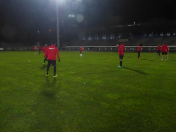 Pour cette 8ème journée, les brasseurs devaient se rendre en Moselle pour y affronter Thionville qui possèdent trois points de plus au classement avant ce match. Après leurs deux excellents matchs nuls 2-2 contre deux des cadors du groupe Lunéville et Asnl 2, les hommes de Julien Chaudre se doivent absolument de prendre des points pour sortir de la zone rouge dans laquelle il se trouve depuis l’entame du championnat. Au vue de la pléthore de joueurs absents pour ce match déjà capital, on se dit que la tâche va être ardue d’autant plus que la pelouse thionvilloise n’est pas un endroit qui leur réussit depuis la montée en R1. En effet, le capitaine Berisha, l’habituel sérial buteur est suspendu, Pechereau, Manga Nkoy, Umbdenstock sont absents sans compter les blessés Bardin, Jacquot, Da Cunha, Fregona et Molter. Il va falloir aux brasseurs un mental de fer pour revenir avec quelques choses de ce déplacement périlleux. Le match s’engage sous une pluie battante qui va rendre le ballon fusant malgré la superbe pelouse tout nouvellement refaite en début de saison. La première occasion va être pour les locaux à la 5ème minute suite à un ballon perdu par Denis à 40 mètres de son but. Dufour, ex joueur du racing enchaine un bon mouvement collectif offensif à trois qui se termine dans la surface à 15 mètres sur la gauche sur Rodrigues qui ouvre son pied mais Simeurt s’envole pour détourner le ballon sur l’angle de sa lucarne droite pour éviter l’ouverture du score des mosellans qui profitent du début de match un peu désorganisé des brasseurs. Finalement le ballon qui ressort dans les six mètres pourra être dégagé par la défense visiteuse qui a eu très chaud sur cette action. Petit à petit les brasseurs se positionnent mieux et occupent beaucoup mieux le terrain pour contrer le jeu des locaux plus que timide collectivement. On les retrouve pour leur première occasion à la 12ème minute suite à un corner frappé de la droite par Denay. Kizilay récupère le ballon sur la gauche et décale en retrait Kabanda à 16 mètres légèrement sur la gauche