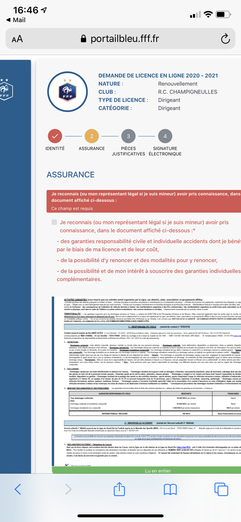 Le certificat médical lui est à joindre avec votre demande de licence(photo5)