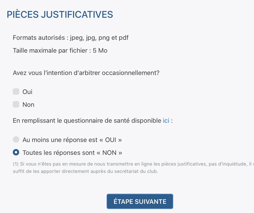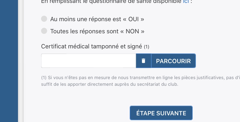 Le questionnaire médical : c’est au secrétariat du RCC que vous transmettez la feuille (avec votre nom et signature) téléchargée, imprimée et remplie par vos soins.