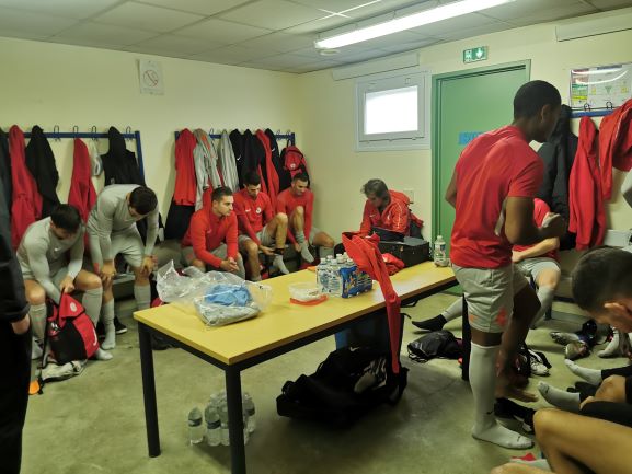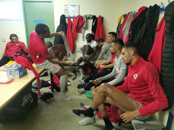 Pour cette quatrième journée de championnat, les brasseurs avaient un très long et inhabituel déplacement vers Sedan pour aller y affronter la réserve de la ville au blason des célèbres sangliers des Ardennes. Pour ce premier des trois grands déplacements de la saison, les brasseurs débutaient le match assez timidement face à une très jeune équipe locale pleine de fougue et de rapidité en cherchant très souvent de long ballon dans la profondeur pour leurs attaquants de pointe. La première opportunité va arriver à la 11ème minute de jeu quand sur un long ballon dans le trou venu de la droite, Fremont va se présenter seul devant Jacquot mais le gardien des brasseurs bien sortie eu pied en dehors de sa surface va repousser le ballon du pied sur le drible de l’avant centre local. Quelle occasion pour les locaux qui étaient à deux doigts d’ouvrir le score. Les racingmen ne sont pas dans le rythme et ont très souvent un temps de retard sur le ballon mais on joue à peine de puis un quart d’heure quand sur un long dégagement de Jacquot, le capitaine local Sanogo va manquer son renvoi de la tête et Berisha va lui chiper le ballon à 30 mètres pour filer seul au but. Le défenseur central local va le déséquilibrer au point de pénalty juste avant qu’il frappe et l’arbitre indique fort justement le point de pénalty et expulse le capitaine local comme dernier défenseur. Double sentence pour les locaux alors qu’on ne joue que depuis à peine quinze minutes. Berisha se charge de se faire justice lui-même mais il doit s’y reprendre en deux temps pour tromper Borel qui avait repoussé sa première tentative au sol. Les brasseurs mènent 1-0 et se retrouvent à 11 contre 10. On se dit à ce moment du match que les 75 minutes restantes vont être une promenade de santé pour les coéquipiers de Guerin. Malheureusement pour les brasseurs ce scénario ne va pas se passer si facilement et il va leur falloir faire preuve de solidarité pour la suite de ce match. Les jeunes locaux sont plus présents sur le ballon et malgré leur infériorité numérique ils se montrent assez pressants sur le porteur du ballon d’autant plus que les racingmen ne sont pas dans un grand jour collectivement. Les locaux ne sont pas collectivement au top mais jouent le plus souvent en profondeur avec des grands ballons qui perturbent très souvent l’arrière de Champigneulles mais sans jamais se créer de réelles opportunités offensives. Il faut attendre la 25ème minute de jeu pour voir les ardennais venir inquiéter la défense des brasseurs suite à une bonne combinaison sur coup franc sur la droite où Sannaa adresse un bon centre au second poteau pour Nleme Oyono bien esseulé mais heureusement sa reprise piquée de la tête est complètement manquée et passe à gauche du but de Jacquot. Les brasseurs n’arrivent pas non plus à inquiéter la défense locale et il faut attendre la 32ème minute pour voir enfin un occasion pour le racing. En effet, c’est Pechereau sur un bon coup franc excentré sur la gauche qui va voir sa frappe brossée rentrante du pied droit flirté avec la lucarne droite du but local. On retrouve à nouveau les coéquipiers de Ginolfi à la 39ème minute sur nouveau coup franc excentré de Pechereau. Le ballon va être repoussé par la défense sedanaise sur Beldjilali à 16 mètres à droite, il contrôle et frappe pied gauche mais son tir est repoussé par un pied ardennais au point de pénalty. Les brasseurs n’arrivent pas à accentuer leur avance au tableau d’affichage et sont toujours à la merci d’un retour des jeunes locaux et à la 44ème minute les sedanais sont tout près d’y arriver sur un long ballon en profondeur pour Nleme Oyono sur la droite qui rentre dans la surface mais heureusement pour les racingmen Guerin bien revenu peut toujours le ballon juste avant la frappe de l’attaquant local et mettre le ballon en corner. Les brasseurs ont eu très chaud sur cette action et peuvent remercier leur coéquipier pour son superbe geste défensif. La mi-temps arrive a point nommé pour les coéquipiers de Montgenie qui ne semblent pas en mesure de réaliser une prestation comme ils savent le faire. Malgré cela il faudra être costaud pour garder ce précieux petit but d’avance synonyme de victoire à l’extérieur de ce long déplacement qui a semble t-il laisser des traces dans les jambes champigneullaises.
